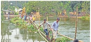 কালিগঞ্জ কোলা বেগবতী নদীতে ব্রিজ নির্মাণে ধীর গতিতে ৪০ গ্রামের মানুষের ভোগান্তি